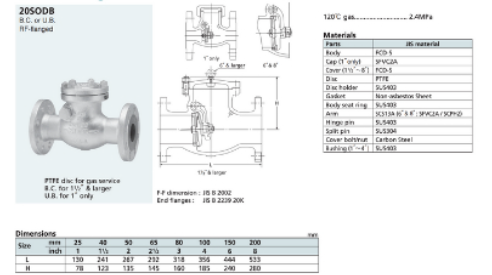 Van 1 chiều gang kitz 20SODB có nguồn gốc xuất xứ từ Nhật Bản. Van 1 chiều gang Kitz 20sodb. Là dòng van được sản xuất từ vật liệu gang dẻo / FCD-S nên có khả năng chịu được nhiệt độ rất cao lên tới 350°. Van được sử dụng nhiều trong hệ thống bình chứa, ống dẫn thủy lực… Nhưng được ứng dụng chu yếu trong hệ thống đường ống gas.
